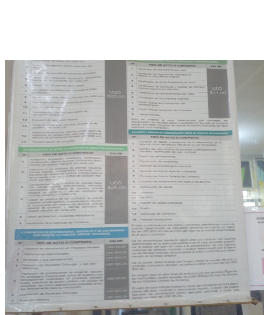 Las tablas de aranceles del Registro de la Propiedad y Mercantil es donde se están determinados los valores a cobrar por los trámites registrales y se encuentran colocadas en un lugar visible del Registro